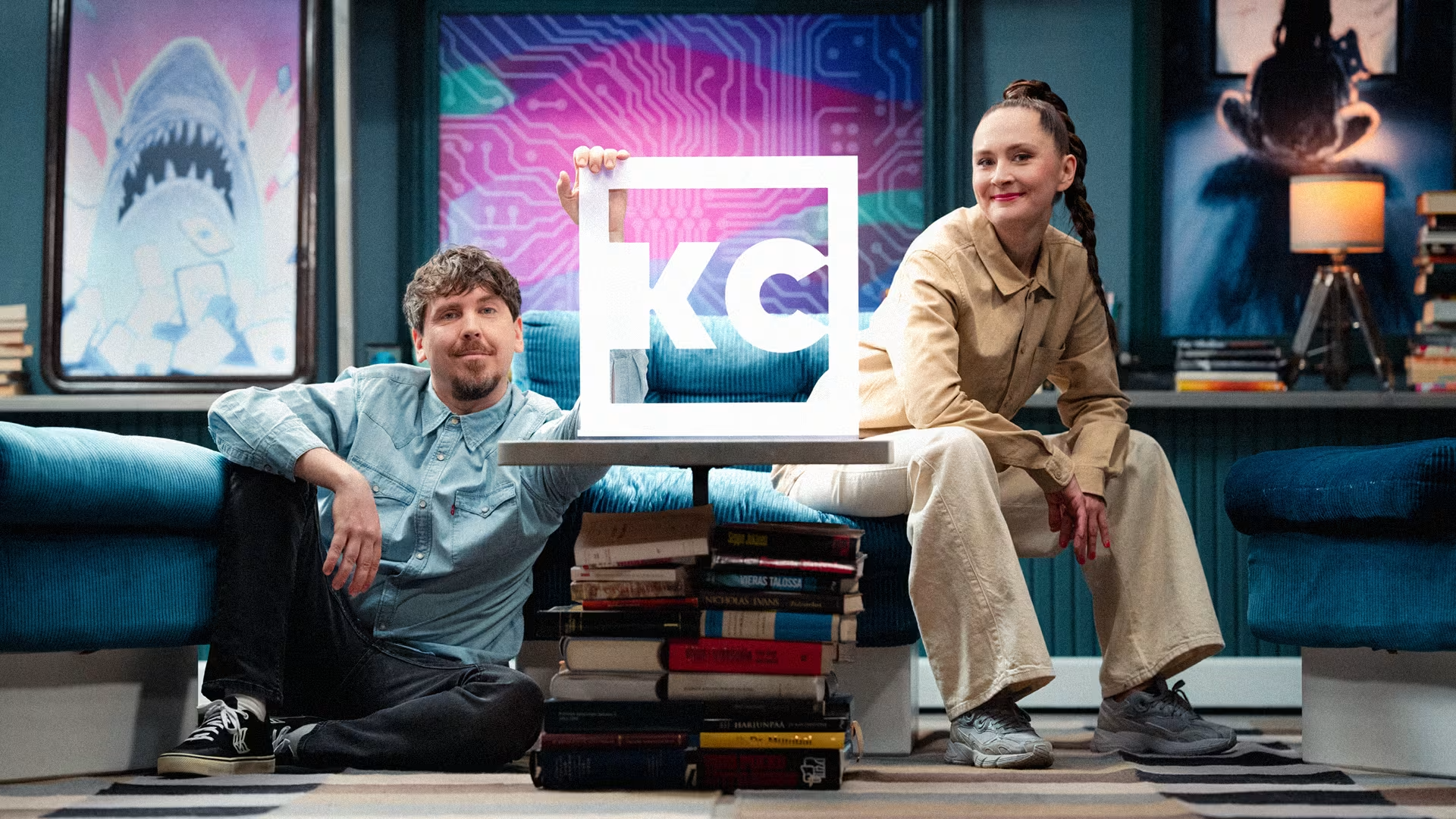 Illustration and graphic design for Kulttuuricocktail live poster in Areena streaming service 2025. Photo by Jukka Lintinen / Yle.